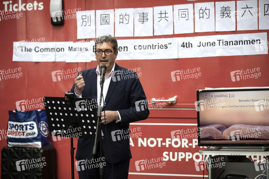Tiananmen Massaker, Platz am Tor des Himmlischen Friedens, Gedenken, Gedenkfeier, Demonstration, Demonstranten, Demo, Kundgebung, Protest, Aktion, Banner, Parolen, Politik, 32. Jahrestag des Massakers, Menschenrechtsaktivist, Mitbegründer von Hong Kong Watch