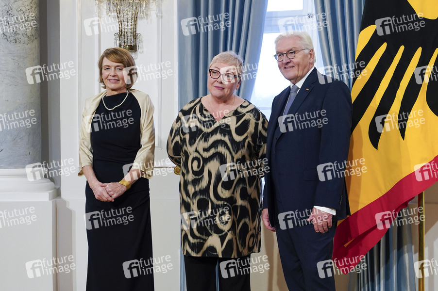 Elke Büdenbender, Evelyn Zupke und Frank-Walter Steinmeier beim Neujahrsempfang des Bundespräsidenten im Schloss Bellevue. Berlin, 10.01.2025