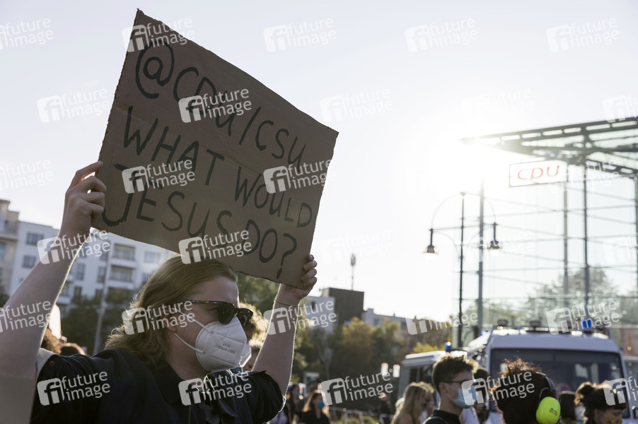 Demonstranten fordern unter dem Motto 'Es reicht! - Wir haben Platz' gemeinsam mit der Aktion Seebrücke und Campact die Evakuierung des Flüchtlingslagers in Moria und die Aufnahme von Flüchtlingen in Deutschland. Berlin, 20.09.2020