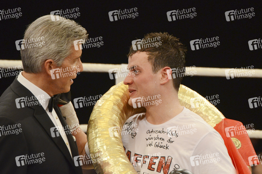Michael Buffer und Rocco Stark bei der Fernsehshow 'Das große Sat.1 Promiboxen 2013' im Castello. Düsseldorf, 08.03.2013
