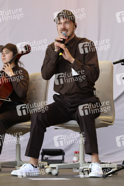Alligatoah live bei einem Konzert der 'Akkordarbeit & das Gregor Schwellenbach Streichquartett'-Tour beim Vor Deiner Tür Open Air im Cruise Center Steinwerder. Hamburg, 29.07.2021.