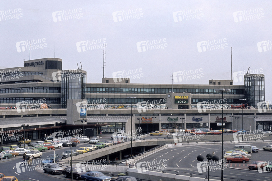 Architektur, Aussenaufnahme, Aussenansicht, Bauwerk, Gebäude, Flughafen, Airport, Flughafenterminal, Terminal, Abflughalle, TXL, Stadtlandschaft, Stadtansicht, Stadtentwicklung, Stadtplanung, Tourismus, Luftverkehr, West-Berlin, Westberlin, Sightseeing