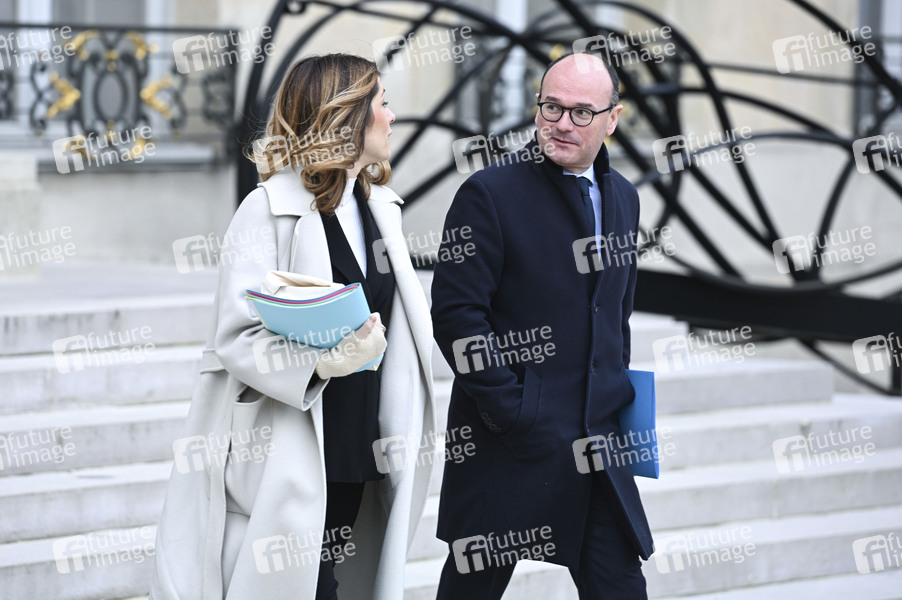 Maud Bregeon und Sebastien Martin bei der ersten wöchentlichen Kabinettssitzung im neuen Jahr im Élysée-Palast. Paris, 05.01.2026