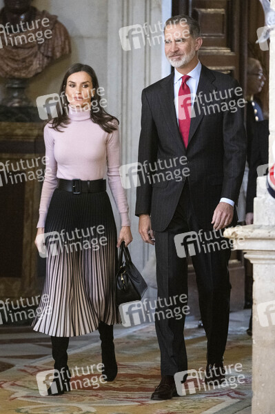 Königin Letizia von Spanien und König Felipe VI. von Spanien bei der Präsentation des 'Digital Portal of Hispanic History' im Palacio Real. Madrid, 28.02.2023