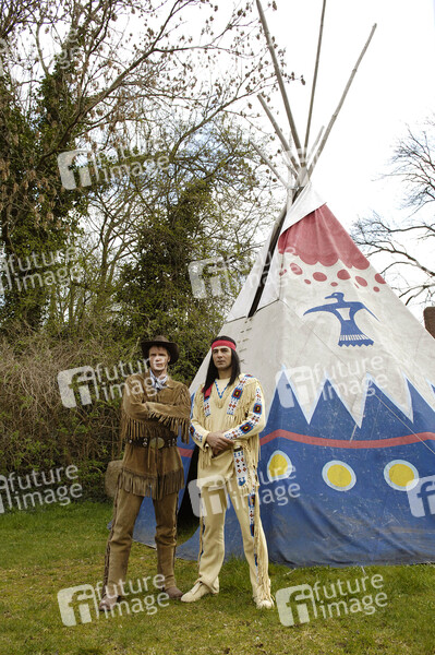 Pressetermin zu 'Winnetou I' der Karl May Freilichtspiele mit Erol Sander als Winnetou und Thorsten Nindel als Old Shatterhand im Indian Village, Bad Segeberg