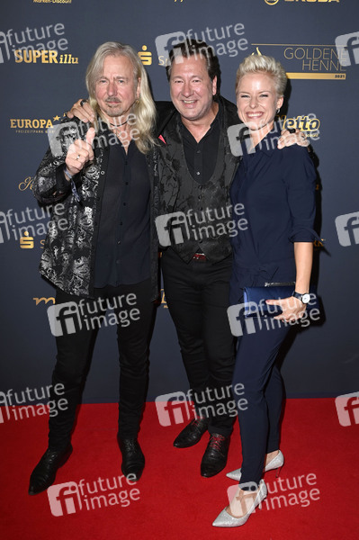 Bernd Römer und Claudius Dreilich mit Ehefrau Belinda von Karat bei der 27. Verleihung der Goldenen Henne 2021 in der Kongresshalle am Zoo. Leipzig, 17.09.2021