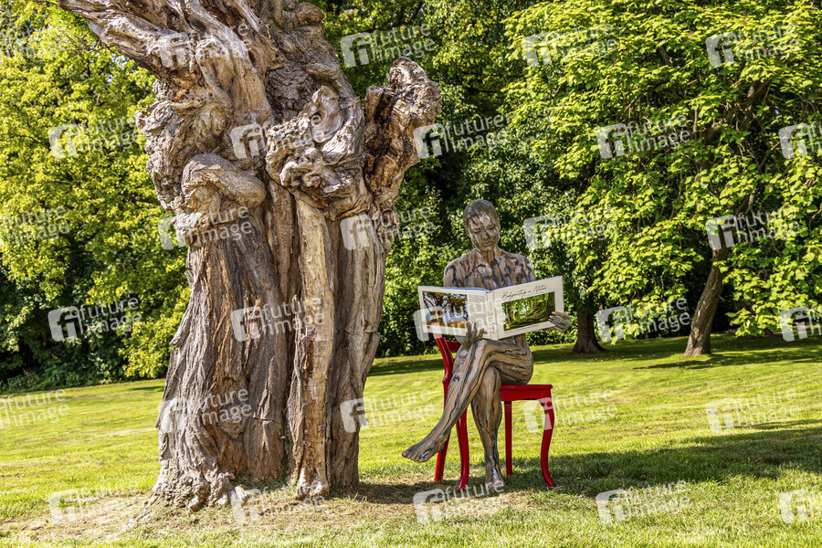 Nature Art: Akazie Bodypainting und Photoshooting mit Model Tatjana Heinz mit dem Düsterwald Fotobildband 'Bodypainting in Nature' im Stadtpark. Braunschweig, 17.09.2025 - Bodyart-Künstler: Jörg Düsterwald