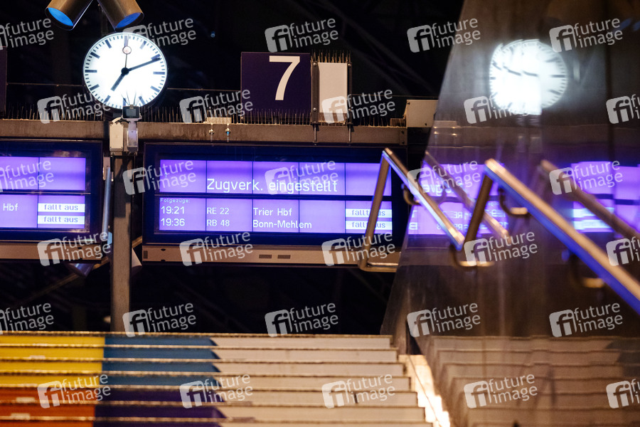 Während Sturmtief Eberhard durchs Rheinland fegt wird der Zugverkehr am Kölner Hauptbahnhof eingestellt. Köln, 10.03.2019