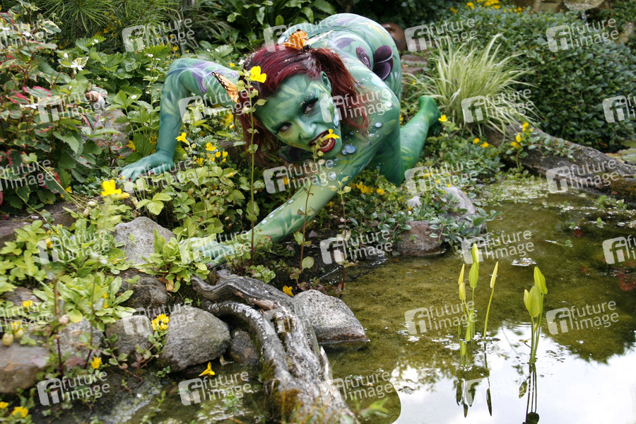 Bodypainting und Fotoshooting mit Model Nadine auf dem 'Tag des offenen Gartens' in Stadthagen-Niedernwöhren. Künstler: Jörg Düsterwald