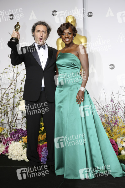 Paolo Sorrentino mit dem Oscar für den besten fremdsprachigen Film 'La Grande Bellezza - Die große Schönheit' und Viola Davis bei der Oscar Verleihung 2014 / 86th Academy Awards Preisverleihung im Dolby Theatre, Hollywood. Los Angeles, 02.03.2014