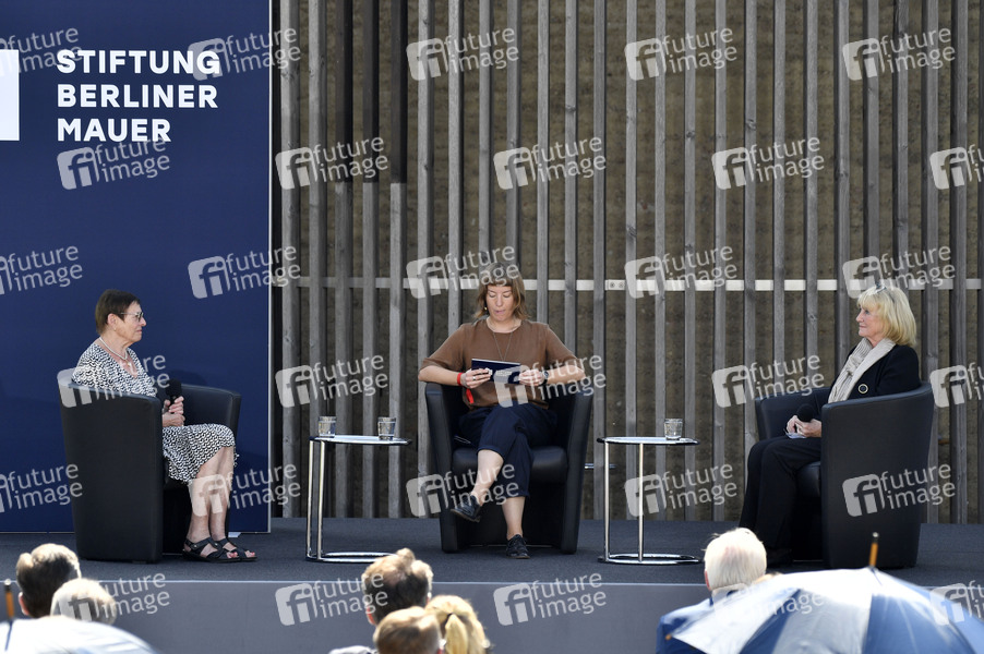 Renate Werwigk-Schneider, Sarah Bornhorst und Brigitta Heinrich bei der zentralen Gedenkveranstaltung zum 60. Jahrestag des Mauerbaus auf dem Vorplatz der Kapelle der Versöhnung an der Gedenkstätte Berliner Mauer an der Bernauer Straße. Berlin, 13.08.2021