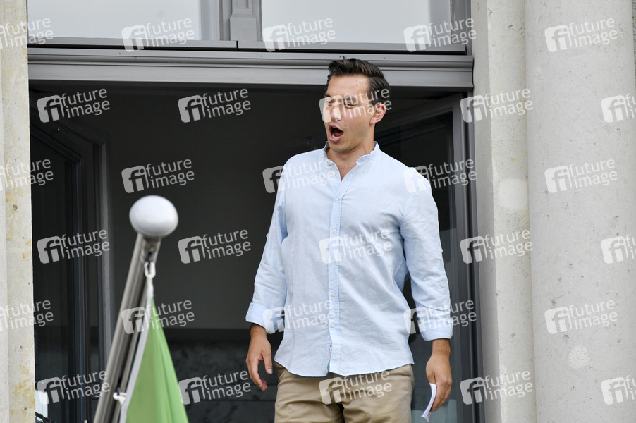 Frederic Jost bei der Hotel de Rome Wiedereröffnung mit Mitgliedern des Internationalen Opernstudios der Staatsoper Unter den Linden, welche aus den Fenstern des Hotels mit Renato Rascels 'Arrivederci, Roma' und Paul Linckes 'Berliner Luft' den Bebelplatz zum Klingen bringen. Berlin, 17.06.2020