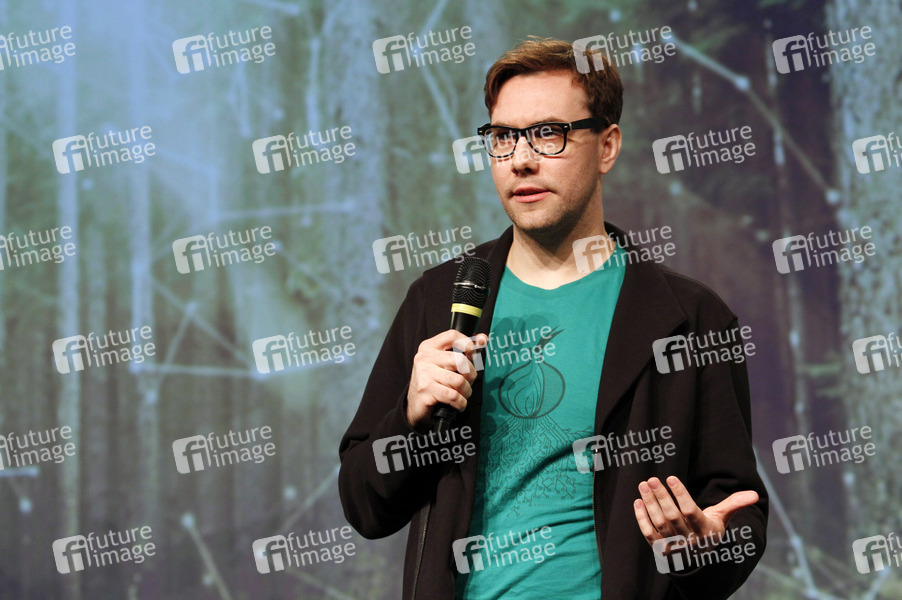 Jacob Appelbaum bei der Eröffnung der MEDIA CONVENTION und re:publica in The Station. Berlin, 06.05.2014