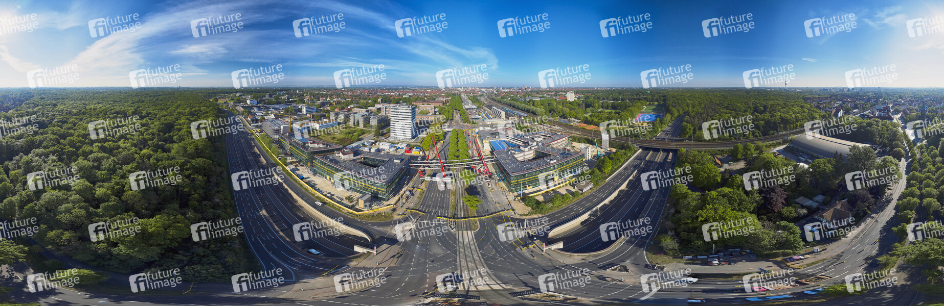 Bau, Brücke, Architektur, Baurabeiten, Brückenbau, Nachtarbeit, Neubau, Continental AG, Kran Kräne, Luftbild, Luftaufnahme, Panorama