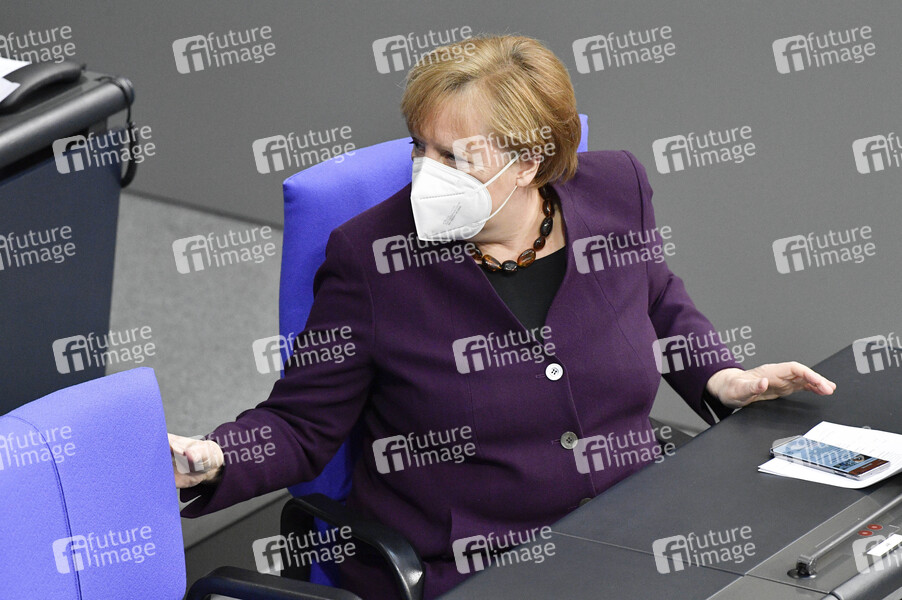 Angela Merkel in der 205. Sitzung des Deutschen Bundestages im Reichstagsgebäude. Berlin, 27.01.2021