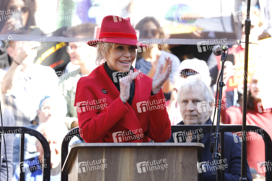 Jane Fonda bei der Fire Drill Fridays Kundgebung gegen den Klimanotfall vor dem Rathaus. Los Angeles, 07.02.2020