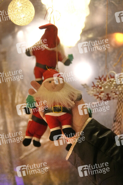 Filz-Weihnachtsmännder auf dem Alt-Rixdorfer Weihnachtsmarkt rund um den Neuköllner Richardplatz. Berlin, 08.12.2024