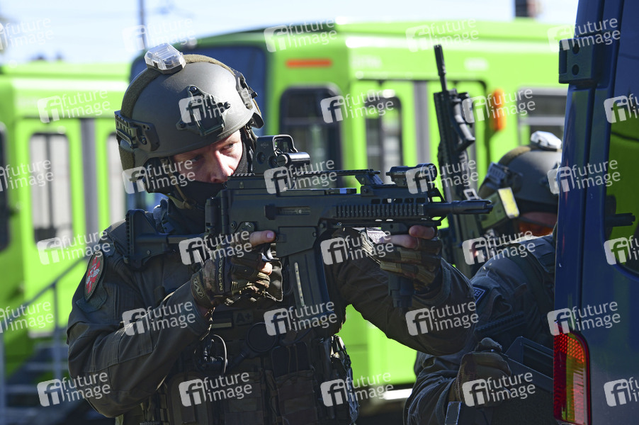 Anschlag, Terror, Gewalt, Geiselnahme, Bus, Verkehr, Sicherheit, Übung, Polzeit, Polizeieinsatz, Schutz, Prävention, Anti-Terror-Einheit, Spezialkrafte, SEK, Geiselnehmer, Terrorist, Symbolbild, Symbolfoto, Themenbild