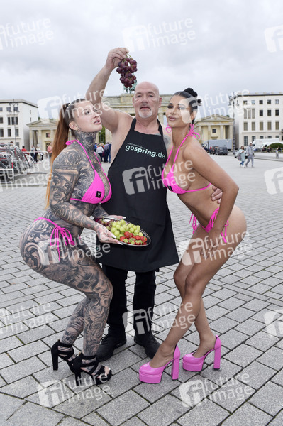 Inked Lorena, Egon Kowalski und Micaela Schäfer beim Fototermin zur Erotikmesse Venus Berlin 2025 am Brandenburger Tor. Berlin, 15.09.2025