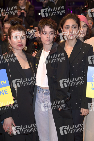 Kristen Stewart und olshifteh Farahani demonstrieren zusammen mit ukrainischen Filmemachern und Mitgliedern der Intarnationalen Jury ihre Solidarität mit der Ukraine auf dem Roten Teppich vor dem Berlinale-Palast auf der Berlinale 2023 / 73. Internationale Filmfestspiele Berlin. Berlin, 24.02.2023