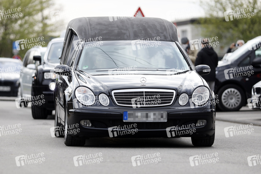 Die Stadt Leverkusen befürchtete eine größere Menschenansammlung bei der Beerdigung eines hochrangigen Clan-Mitglieds einer Großfamilie und damit Verstöße gegen die Corona-Schutzverordnung. Der Leichenwagen mit dem Sarg des Verstorbenen wird von einem Autokorso begleitet. Leverkusen, 09.04.2021
