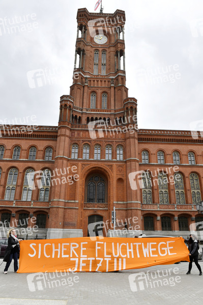 Demo, Demonstration, Demonstranten, Politik, Protest, Aktion, Evakuierung, Räumung, Flüchtlingslager, Menschenrechte, Demo, Rotes Rathaus, Initiative Seebrücke, Flüchtlingspolitik, Asyldebatte, Asylpolitik, Einwanderung, Zuwanderung, Asylrecht, Asylgesetz