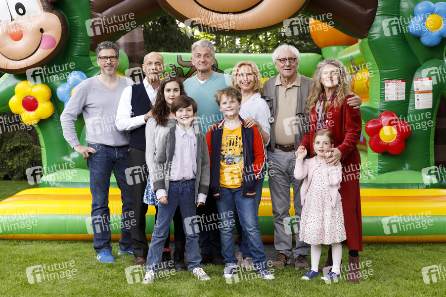 Wolfgang Groos, Heiner Lauterbach, Maya Lauterbach, Bruno Grüner, Dominic Raacke, Julius Weckauf, Maren Kroymann, Günther Maria Halmer, Barbara Sukowa und Luise Gleich beim Fototermin am Set des Kinofilms 'Enkel für Anfänger' am Dellbrücker Mauspfad. Köln, 30.04.2019