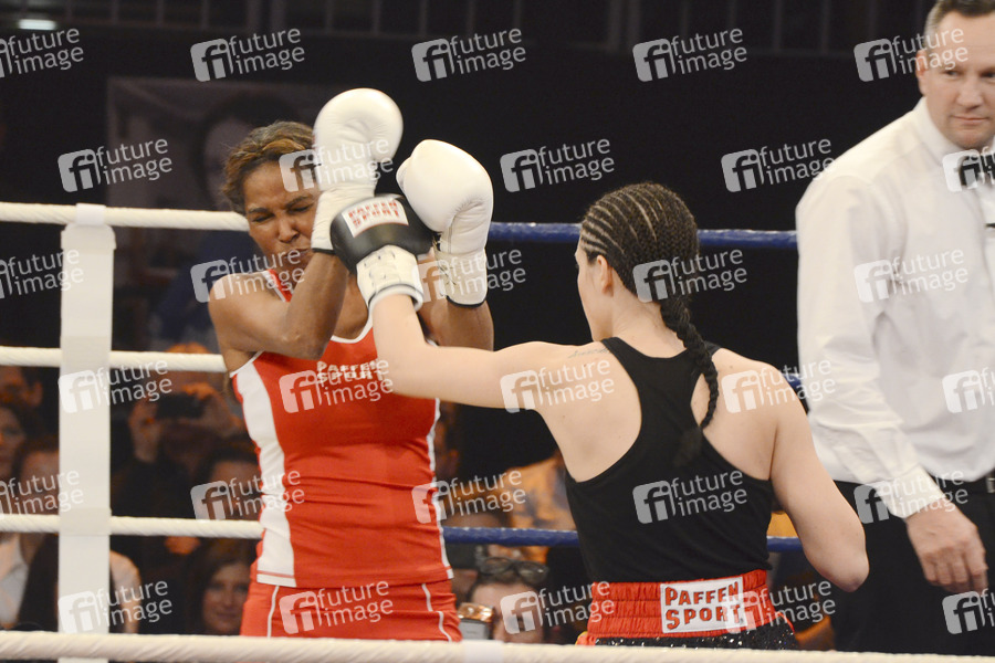Nadja 'Naddel' Abd el Farrag vs. Tessa Bergmeier bei der Fernsehshow 'Das große Sat.1 Promiboxen 2013' im Castello. Düsseldorf, 08.03.2013