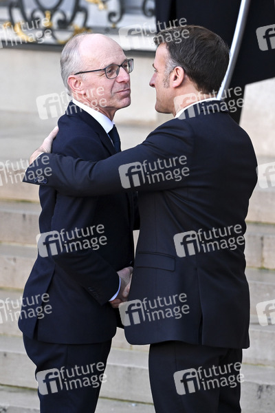 Luc Frieden und Emmanuel Macron beim Treffen der Koaltion der Willigen zu Beratung über die militärische Unterstützung für die Ukraine im Élysée-Palast. Paris, 06.01.2026