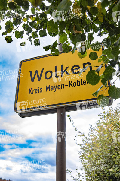 Ortsschild der Ortschaft Wolken. Wolken, 03.11.2020