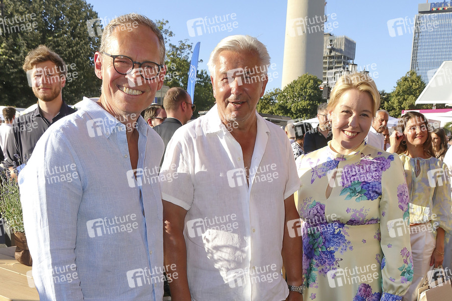 Michael Müller, Klaus Wowereit und Franziska Giffey beim 23. Berliner Hoffest 2025 am Roten Rathaus. Berlin, 01.07.2025