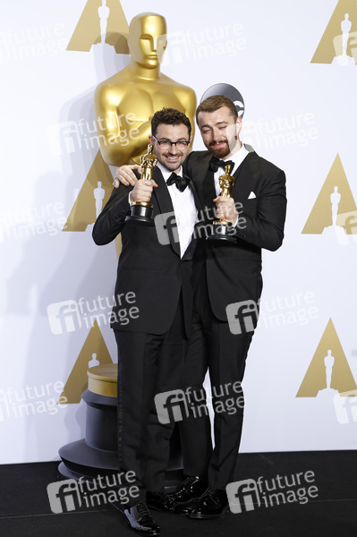Jimmy Napes und Sam Smith (Bester Filmsong 'Writing’s on the Wall' aus 'James Bond 007: Spectre') im Presseraum der Oscar Verleihung 2016 / 88th Academy Awards im Loews Hollywood Hotel. Los Angeles, 28.02.2016