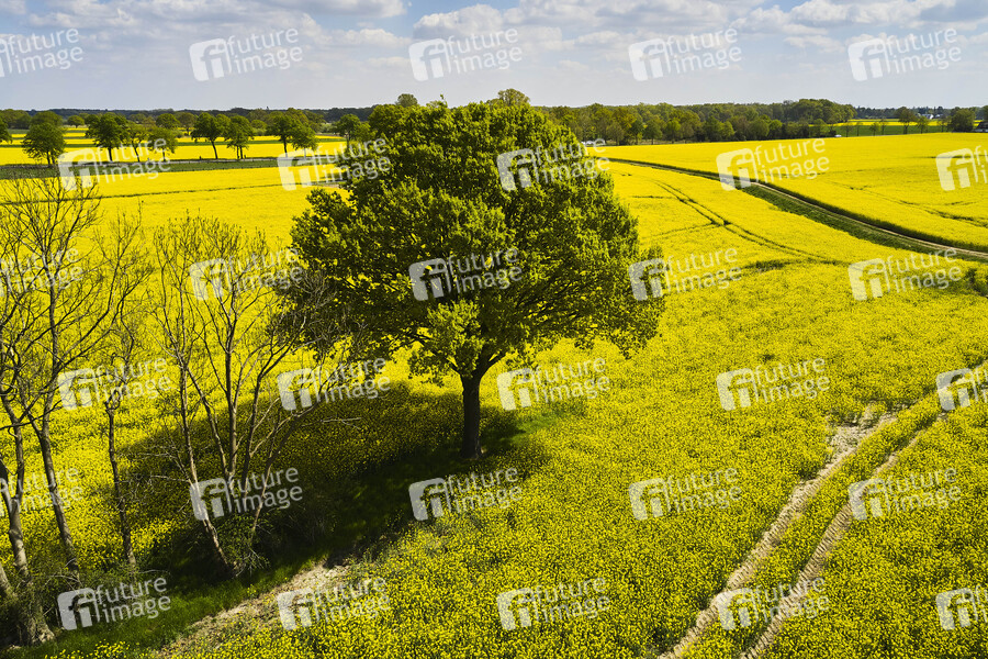 Luftbild, Luftaufnahme, Drohnenaufnahme, Feld, Natur, Raps, Pflanze, Kreuzblütengewächs, Nutzpflanze, Rapsöl, Lewat, Landwirtschaft, Baum, Symbolfoto, Symbolbild