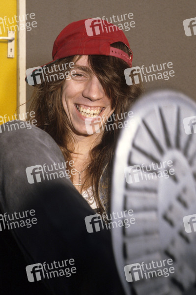 Scotti Hill von Skid Row bei einem Photoshooting im Milton Keynes Bowl. Milton Keynes, 18.08.1989