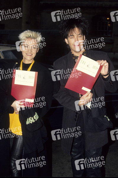 Marie Fredriksson und Per Gessle von Roxette bei der Pressekonferenz zur Verleihung der BRIT Awards 1991 im St. Georges Hotel. London, 10.12.1990