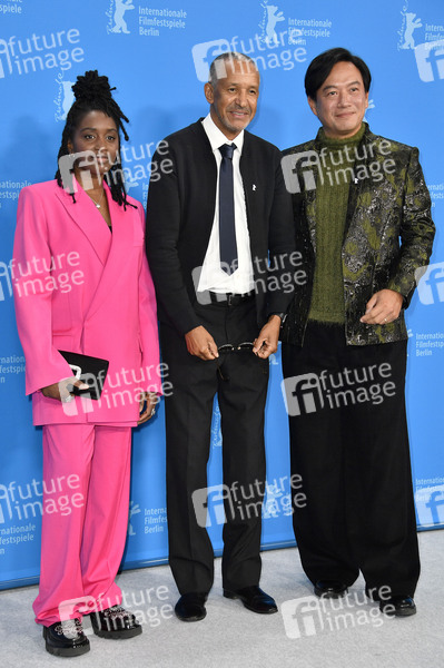 Nina Melo, Abderrahmane Sissako und Chang Han beim Photocall zum Kinofilm 'Black Tea' auf der Berlinale 2024 / 74. Internationale Filmfestspiele Berlin im Hotel Grand Hyatt. Berlin, 21.02.2024