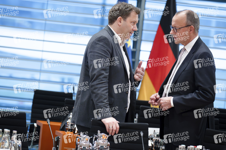 Lars Klingbeil und Friedrich Merz bei der Konferenz der Ministerpräsidenten der Länder im Kanzleramt. Berlin, 04.12.2025