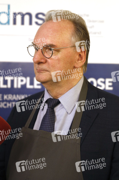 Reiner Haseloff beim Benefizkochen zugunsten der Deutschen Multiple Sklerose Gesellschaft Sachsen-Anhalt e.V. in der Siemens-Life-Kochschule des Küchenstudios Micheel. Hall, 04.03.2020