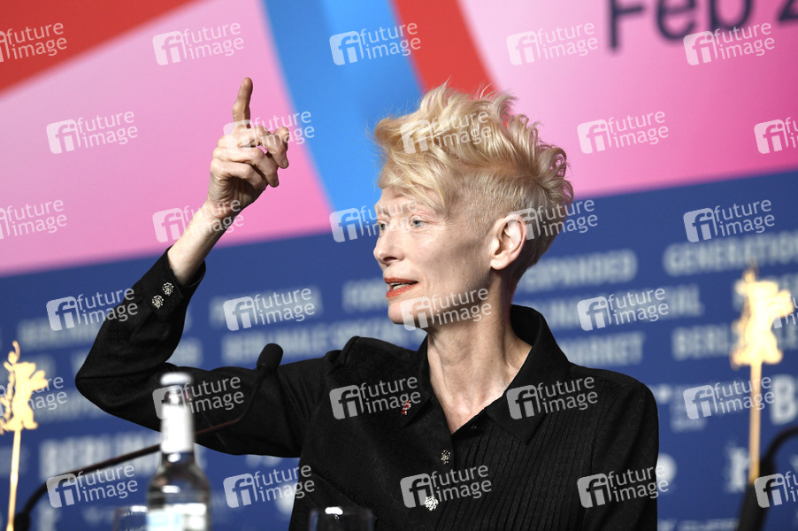 Tilda Swinton bei der Pressekonferenz zur Verleihung des Goldenen Ehrenbären auf der Berlinale 2025 / 75. Internationale Filmfestspiele Berlin im Hotel Grand Hyatt. Berlin, 14.02.2025