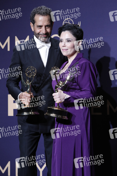Tony Shaloub und Alex Borstein mit den Emmys für die besten Nebendarsteller in einer Comedy Serie in 'The Marvelous Mrs. Maisel' bei der Verleihung der 71. Primetime-Emmy-Verleihung 2019 im Microsoft Theater. Los Angeles, 22.09.2019