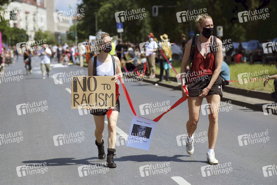 Demonstration vom Bündnis 'Unteilbar' mit einer Menschenkette gegen Rassismus und soziale Ungerechtigkeit vom Brandenburger Tor in Berlin-Mitte bis zum Hermannplatz in Berlin-Neukölln unter dem Motto 'SoGehtSolidarisch'. Berlin, 14.06.2020