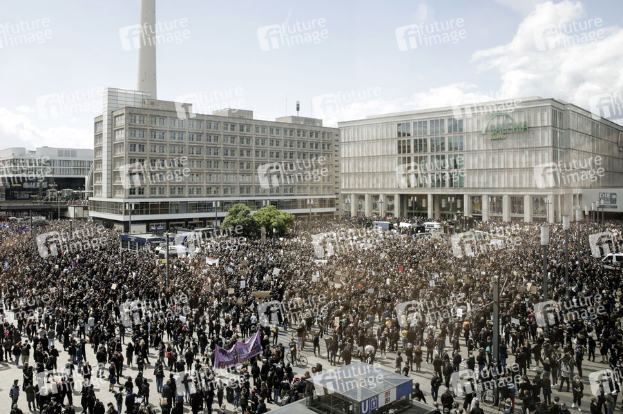 Demonstranten bei der 'Silent Demo' gegen Rassismus am Alexanderplatz. Berlin, 06.06.2020