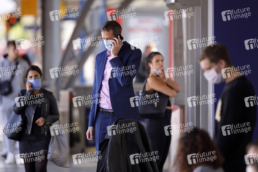 DB, Deutsche Bahn, Hauptbahnhof, Maskenpflicht in öffentlichen Verkehrsmitteln, öffentliche Verkehrsmittel, Bus, Busse, Bahn, Bahnen, Zug, Züge, maskiert, vermummt, Vermummung, NRW, Maske, Masken, Masken-Pflicht, Gesichtsmaske, Behelfsmaske, Behelfsmasken, Straßenbild, Öffentlichkeit, öffentlicher Raum, Maske tragen, Masken tragen, Mindestabstand, Lockerung der Corona-Maßnahmen, Tröpfcheninfektion, Spritzschutz, Eindämmung, Virenschutz, Übertragung, Maskenzwang, Bußgelder, Ordnungsgelder, Corona-Gesetze, Durchseuchung, immun, Immunität, Reproduktionszahl, Seuchenschutz, Virologie, Infektionsschutz, Atemschutz, Atemschutzmaske, Virenschutz, Schutzmaske, Schutzmasken, Atemschutzmasken, Maske, Masken, FFP1, FFP2, FFP3, FFP-Schutzklassen, Schutzklasse, Mundschutz, Mundschutzpflicht, Mund-Schutz, Mundschutz-Pflicht, Mund-Nase-Schutz, Mund-Nasen-Schutz, MNS, Ausbreitung, Corona-Schutz, Virus, Viren, Corona, Sars-CoV-2, Covid-19, Coronavirus, Coronaviren, Corona-Virus, Corona-Viren, Ansteckung, Ansteckungsgefahr, Epidemie, Pandemie, Infektion, Infektionen, schützen, Schutz, Maßnahmen, Neuansteckungen, Ansteckung, Coronakrise, Corona-Krise, Coronamaßnahmen, Corona-Schutz, Corona-Maßnahmen, Papiermaske, Papiermasken, Kontaktverbot, Ausgangsbeschränkungen, Mindestabstand, Ausgangssperre, Lockdown, Lock Down, Symbolfoto, Symbolbild