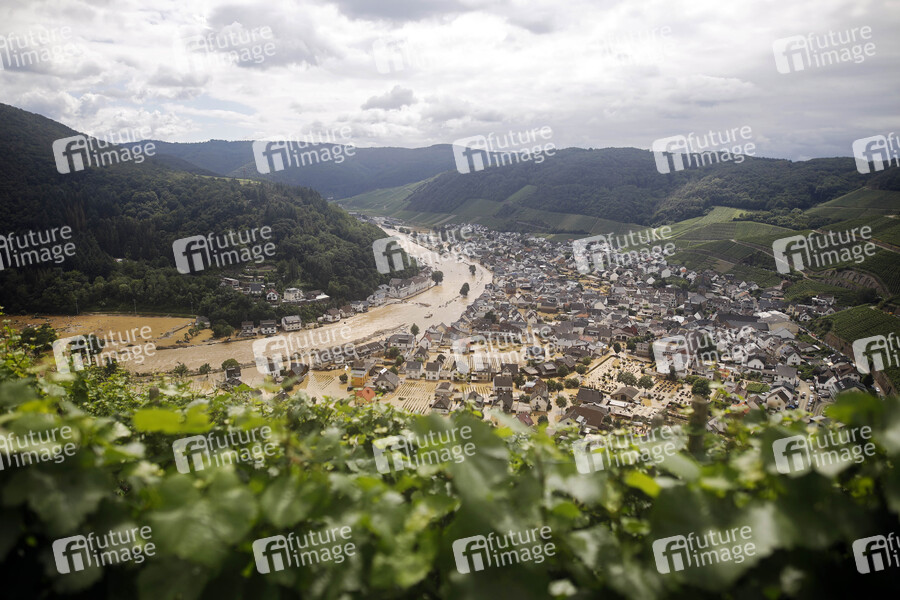 In der Eifel haben heftige Regenfälle und Dauerregen für Überschwemmungen und Überflutungen gesorgt. Im Ahrtal trat der Fluss vielerorts über die Ufer und überschwemmte nicht nur Keller sondern ganze Ortschaften. Im Bild der Ort Dernau, der beinahe komplett von den Wassermassen geflutet wurde. Viele Menschen verloren alles. Dernau, 15.07.2021