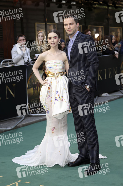 Lilly Collins und Nicholas Hoult bei der Premiere des Kinofilms 'Tolkien' im Curzon Mayfair. London, 29.04.2019