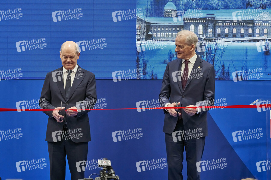 Deutsche Messe AG, Hannover Messe Industrie, Weltleitmesse der Industrie, Industriemesse, Industrieschau, Automatisierung, IT-Sicherheit, KI, Technologie, Wirtschaft, Ausstellung, Fair, Messe, Eröffnung, Opening, Leitmesse, Synergie und Kooperation, Wasserstoff & Brennstoffzellen, CO2-neutrale Produktion, Energizing a Sustainable Industry, Partnerland Norwegen, Bundeskanzler, SPD, Jonas Gahr Støre, Jonas Gahr Störe, Politiker, Ap, Ministerpräsident von Norwegen
