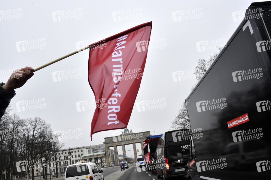 Nach 365 Tagen Lockdown in der Veranstaltungswirtschaft findet heute eine Auto-Demonstration zur Rettung der Veranstaltungswirtschaft vom Aktionsbündnis 'Alarmstufe Rot' statt. Berlin, 28.02.2021