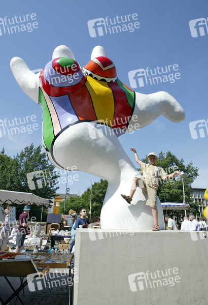 Kunstwerk von Niki de Saint Phalle von 1974, Frauenfiguren mit überdimensionierten Geschlechtsteilen