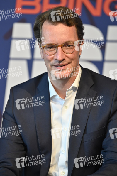 Hendrik Wüst bei der Pressekonferenz zur 41. Basketball-Europameisterschaft 'FIBA Eurobasket 2022' im im Deutschen Sport & Olympia Museum. Köln, 29.04.2022
