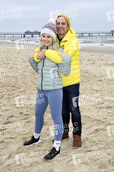 Susan Sideropoulos mit Ehemann Jakob Shtizberg beim 9. Baltic Lights 2025 Charity-Schlittenhunderennen zu Gunsten der Welthungerhilfe zwischen der Seebrücke Ahlbeck und der Seebrücke Heringsdorf. Heringsdorf, 01.03.2025